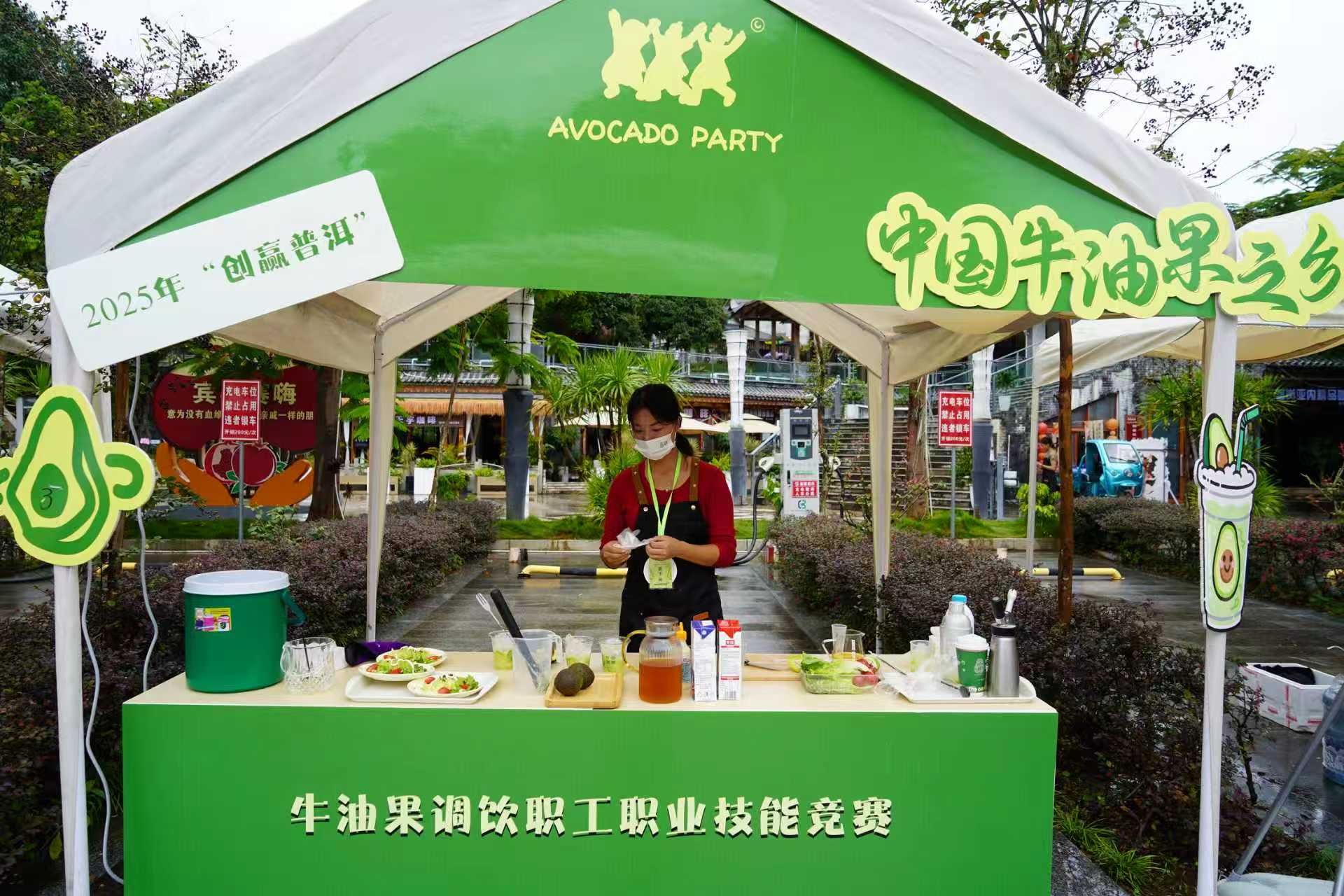 在牛油果节开幕前一天,一场精彩的“创赢普洱”牛油果调饮职工职业技能竞赛已率先在孟连县精品咖啡主题街上演。选手们以牛油果为核心原料,将其融入奶茶、果茶、沙拉、甜点等多元形态,用匠心勾勒出牛油果从传统鲜食向高价值创意产品转型的路径。最终,孟连产投集团商贸有限公司陈建若斩获个人一等奖,孟连傣允允咖啡代表队拿下团体一等奖。“一颗牛油果的价值能成倍释放!”一等奖获得者陈建若的感慨,正是孟连推动牛油果产业升级的生动注脚。