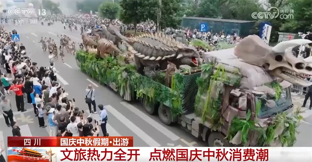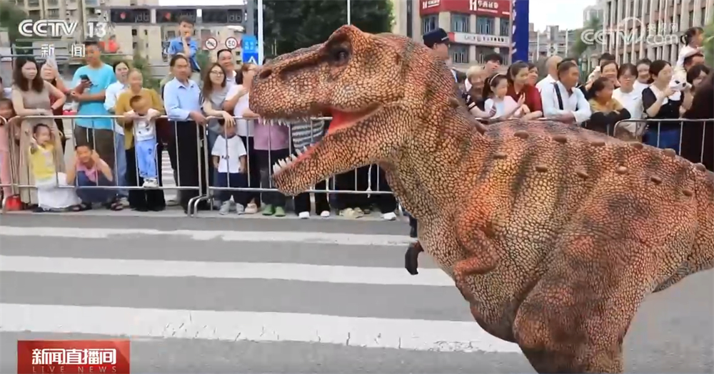 四川自贡因出土大量完整、珍贵的侏罗纪恐龙化石,被誉为 “恐龙之乡”。这个假期,在自贡富顺县,主题为“史前派对”的“恐龙”大巡游吸引近4万名游客驻足观看。方阵里还有川剧、杂技等表演,全球首批智能仿真恐龙机器人的出现立刻成为游客追逐的焦点。