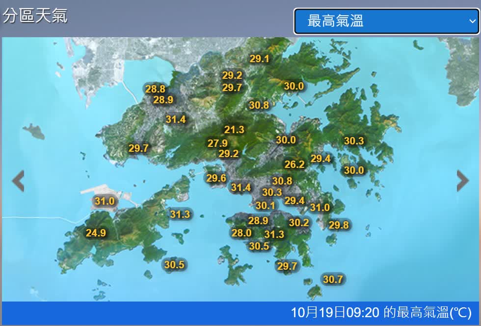 天氣酷熱,今早9時許,本港多處已錄得逾31度氣海溫,元朗公園、深水埗均錄得31.4度、跑馬地31.3度、將軍澳31.0度。天文台提醒巿民,如果要在戶外活動或工作,最好戴寬邊帽,穿淺色、寬鬆的衣服,盡量留在蔭涼的地方。要充分喝水,但避免喝含咖啡因或酒精的飲品。如有不適,要盡快看醫生。衞生署衞生防護中心亦提醒市民,應採取適當措施預防高溫引發的疾病,例如熱痙攣、熱衰竭和中暑。