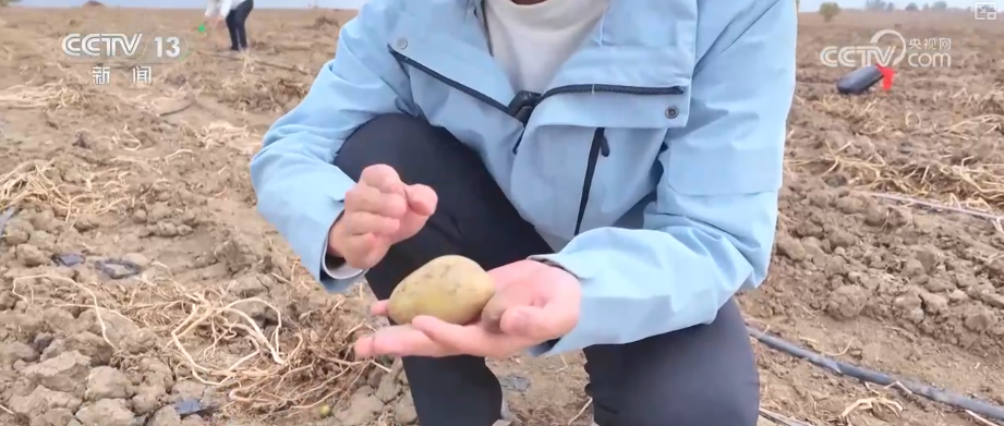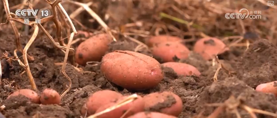 这就是刚才记者已经收获的土豆,五颜六色的,有红皮的、有黄皮的。土豆虽然小,但是外观非常完整。它们为什么会被农民遗落在田野里?