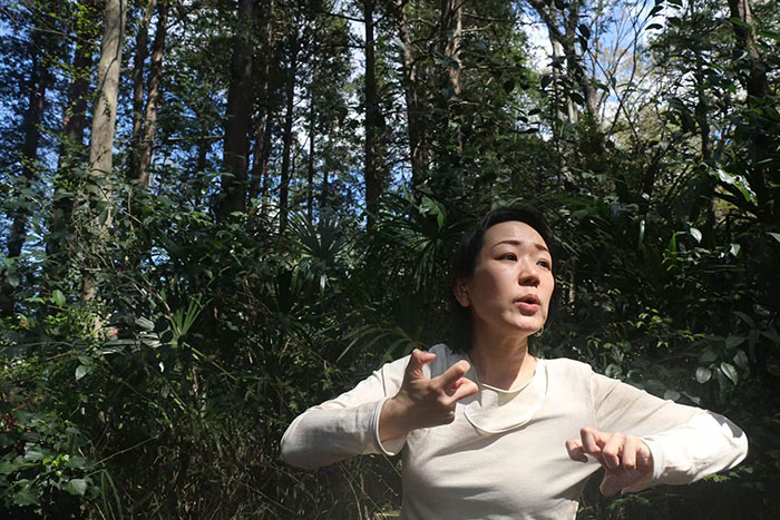上海双年展参展艺术家山崎阿弥在上海植物园盆景园呈现一场特定场域表演,延续她对声学空间与“相互倾听”的探索。她将人声视为自我定位的方式,身体成为与空间共振的容器。通过歌唱与聆听,艺术家以歌唱、聆听与回声在环境中“定位”,逐步消解表演者与场所的主客边界,并邀请观众共同建立新的感受力。