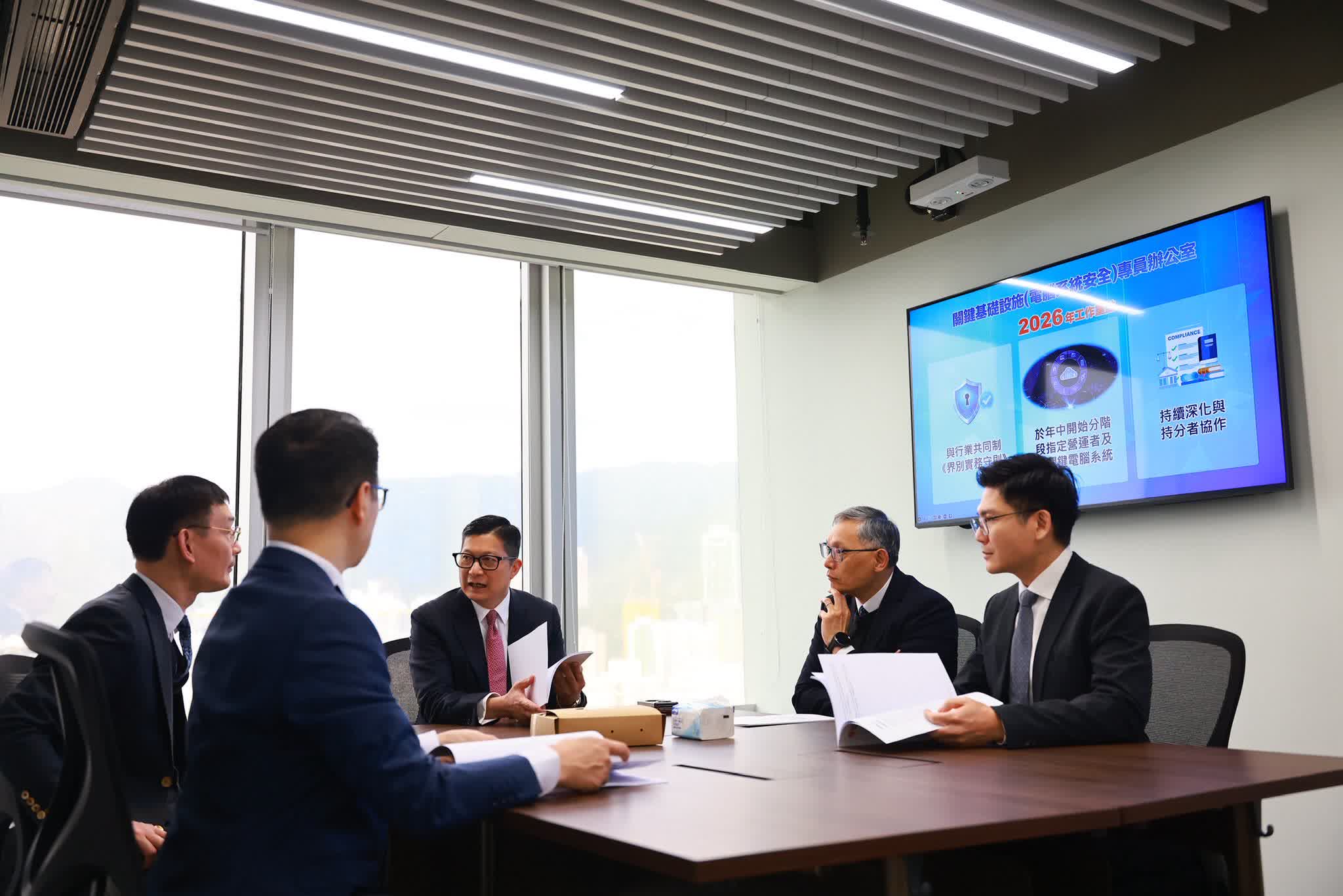 《保護關鍵基礎設施(電腦系統)條例》已經於1月1日正式生效,專責辦公室同步成立。保安局局長鄧炳強今日到辦公室聽取新任關鍵基礎設施(電腦系統安全)專員匯報工作進展。