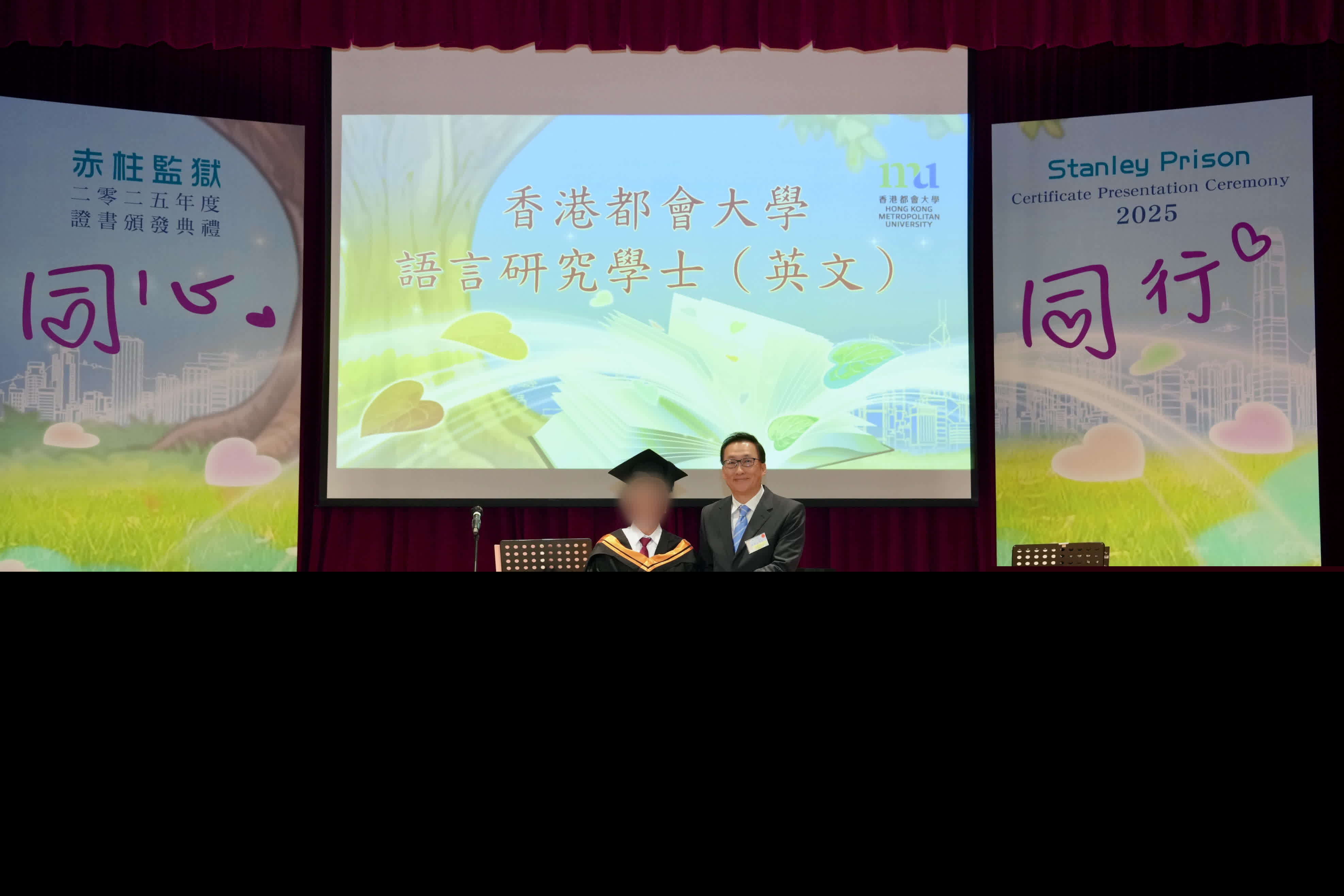 懲教署指,赤柱監獄於過去一年共有195名在囚人士報考各類課程及公開考試。他們共取得277卷合格成績,其中97卷為優良成績。課程及考試由都大及明愛社區書院舉辦,科目包括語文及文學、商業英語、商業財務及會計等。而今日參加典禮的62名在囚人士共考獲99卷合格成績,其中72卷為優良成績,當中一名在囚人士人獲都大頒授語言研究學士(英文)學位、兩名獲頒通識教育學士學位,以及一名獲頒通識教育副學士學位。