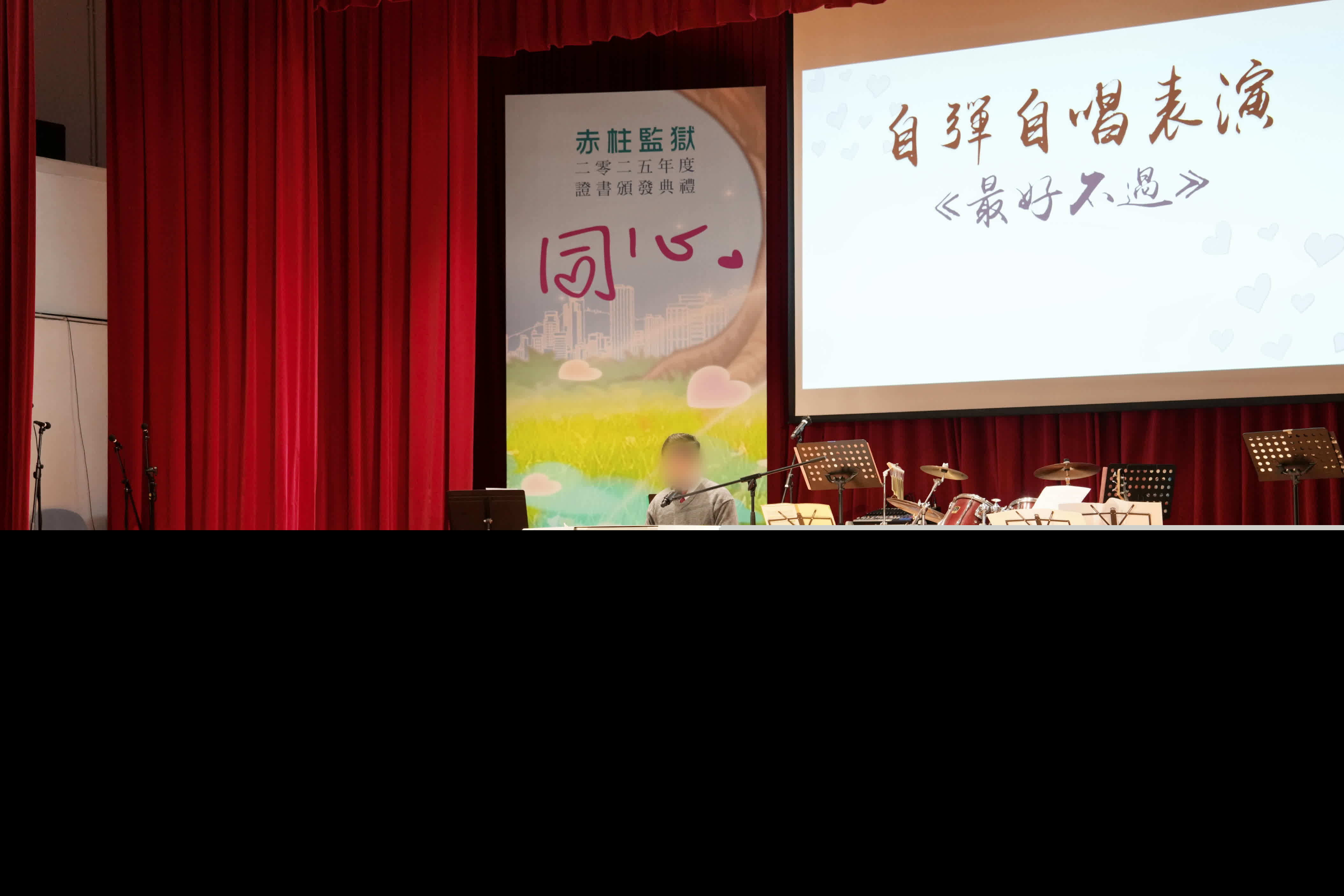 典禮上,除有在囚人士中樂表演外,還有在囚人士組成的樂隊和慈山青年合唱團合作獻唱歌曲。在分享環節中,一名在囚人士以自彈自唱方式向母親表逹謝意,感謝她的不離不棄及支持,鞏固了他改過的決心。